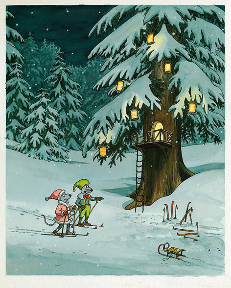 Pepík u trpaslíků, tuš, akvarel, digitálně upraveno,